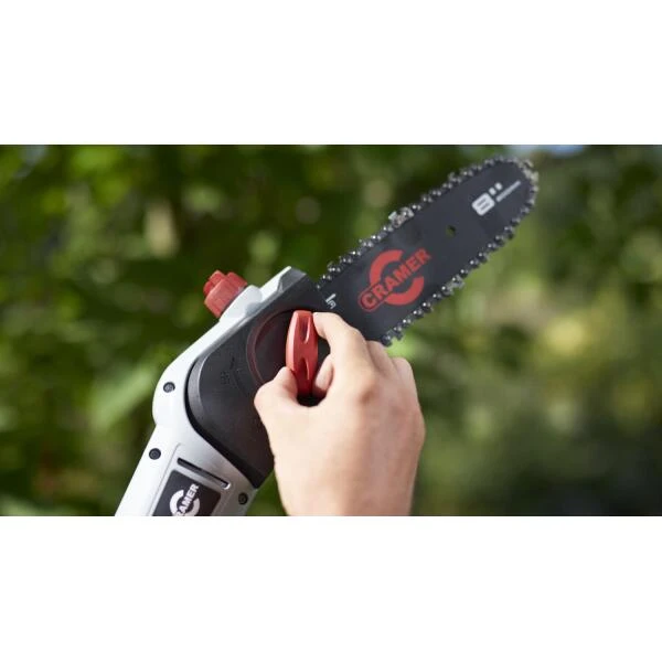 Met de CRAMER 40V snoeizaag 40PS op steel op accu met een totale lengte van 2,5 m bereikt je moeiteloos takken. Zo hoef je niet langer een ladder te gebruiken.