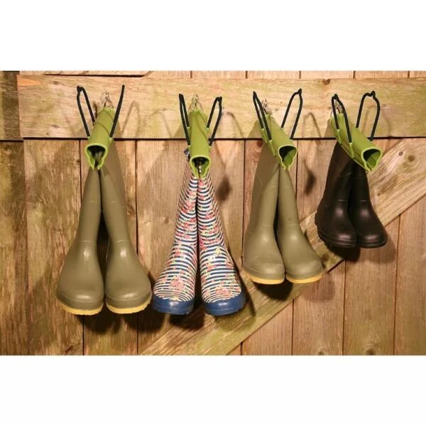 Dankzij deze laarzenklem blijven de laarzen van de hele familie netjes rechtop staan. Een kleine haak zorgt er tevens voor dat je de laarzen kan opgehangen. Wil je de laarzen naar de autokoffer brengen dan dragen ze ook vlotter en blijven ze netjes per paar.
