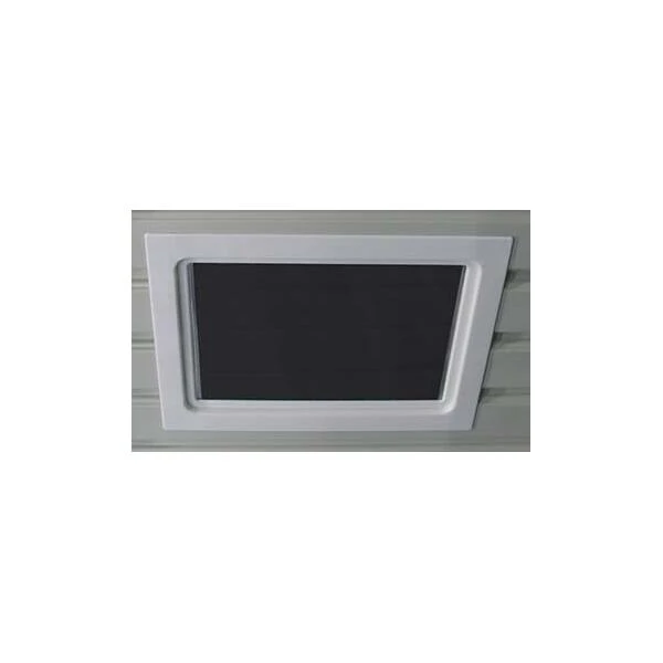 Makkelijk te monteren grijs tuinhuis van Sinolily. De metalen berging heeft een brede dubbele deurdeur, een raam en verluchtingsopeningen.